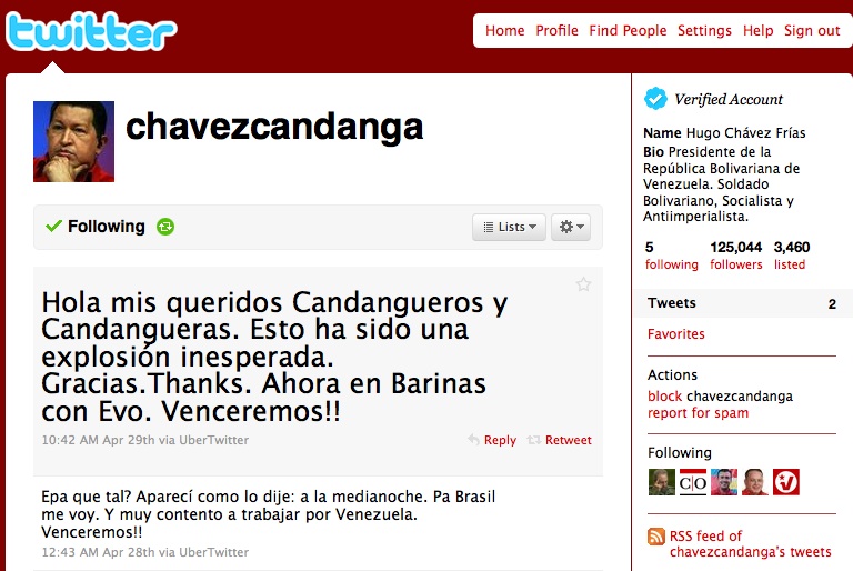 Not content with debuting this week on Twitter, Hugo Chávez -aka @ChavezCandanga is now inviting pals Evo Morales and Fidel Castro to follow suit.