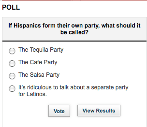 Fox News Latino, the bastion of fair-and-balanced journalism (LOL) is asking readers of its hot & spicy new Web site to help them name a political party should Latinos were to form their own party. Should it be the Salsa Party? The Cafe Party? or The Tequila Party?