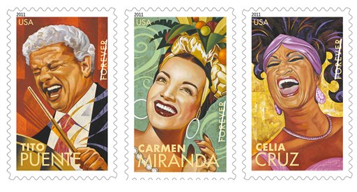 Tired of cute kittens, war veterans or that boring flag? Coming soon to your nearby U.S. Post Office: Tito Puente, Carmen Miranda, Carlos Gardel and Selena.