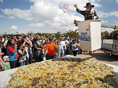 This blogger has absolutely no idea what a “navajo taco” is but residents of Gallup, N.M. got a taste of it this past weekend, when the city attempted to enter the World Records of Guiness by cooking a colossal one. According to the local press: