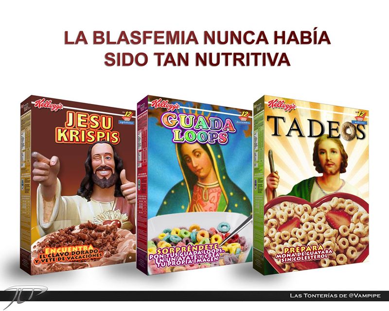 Hispanic moms should worry no more: Jesu Krispis, Tadeos and Guada Loops are here to make sure their little devils will go off to school not only with a full belly, but with energy and a blessed heart — and soul — ready to face anything… anything, even their increasingly likely deportation.