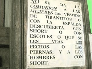 We will not grant communion to women wearing dresses with straps, or whose backs show, or wearing shorts or cleavages, or those who show their breasts or legs… and to men wearing shorts.