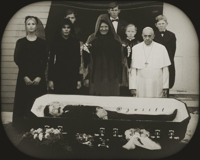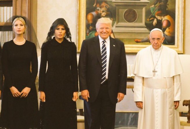Everyone has seen the pic now: An awkward-looking Pope Francis who looks as if he is being held hostage inside his own home, posing next to a cheerful Donald Trump and his wife and daughter, both in black and wearing black veils — for some reason.