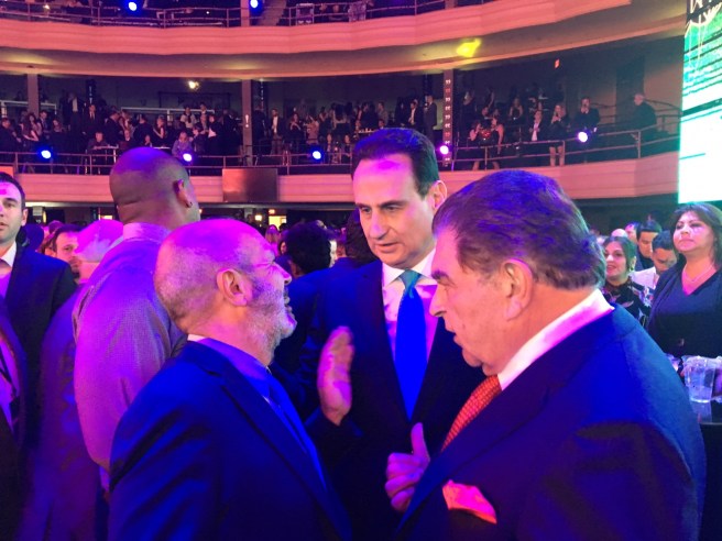As usual, right before the event I was able to squeeze past security and reach the so-called VIP area of the Hammerstein Ballroom, where I spotted my friend José Díaz Balart chatting with former Univision star Mario Kreutzberger (aka Don Francisco) who is making a TV comeback on Telemundo — for some reason.
