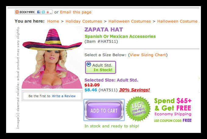 Meet the “Zapata Hat,” a colorful sombrero by CostumeCraze that will make any botoxed blond with fake boobs and a pink barbie cape look like Adelita herself.