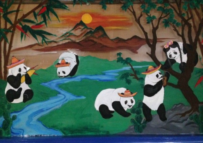 EASY! Just add some sombreros –and trenzas– to the pandas on your wall paintings, and… boom! You got yourself a Mexican-themed establishment!*