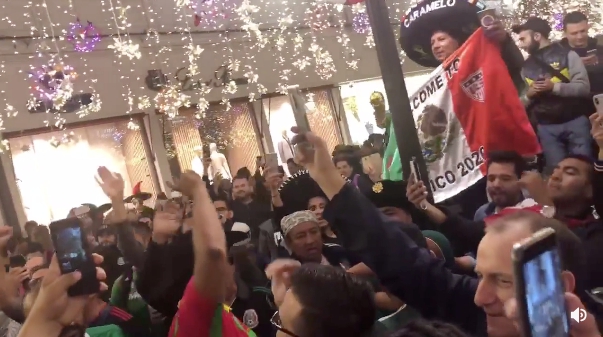 As soon as the news of the German defeat broke, Mexicans in the stadium started to chant and hug each other even when their team was losing 3-0 to Sweden and was clear it will never recover. Chilangos in Mexico City, meanwhile, took to the streets and marched all the way to the South Korean embassy to thank Koreans for “their service” in the most awesome way; singing the popular Cielito Lindo, bringing gifts to the Korean Ambassador and lifting random Koreans in arms and cheering them on. ¡Hermano, coreano, ya eres mexicano!