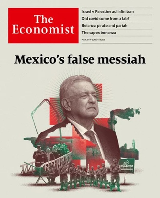 Published in its May 29-June 4 edition, the piece made it to the cover, showing a photo composition of AMLO beneath the headline “Mexico’s false messiah.” The editorial compares AMLO, as the president is commonly known, to “authoritarian populists” Viktor Orbán of Hungary, Narendra Modi of India and Jair Bolsonaro of Brazil.