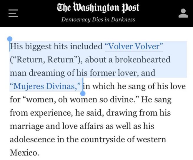 Vicente Fernández died December 12, 2021 at 81. His Washington Post obituary is a thing of beauty.