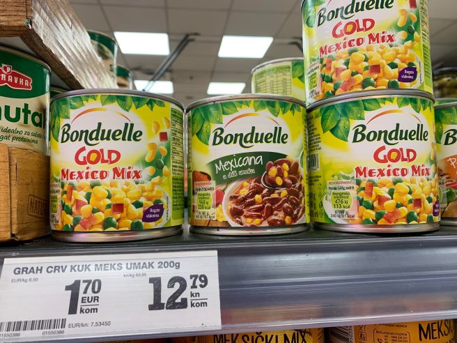 It will never not be funny to me that beans and corn have come to become synonyms with Mexican food. No matter how varied and wonderful our cuisine actually is. Here is the latest specimen found at my local Konzum in Zagreb.